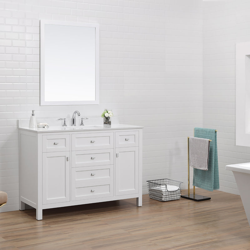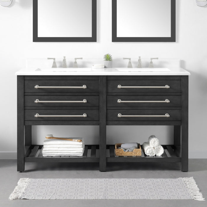 White Double Vanity, Engineered Marble Top & Ceramic Basin