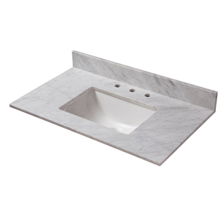 37 in. x 22 in. Carrara Marble Vanity Top with Trough Basin and 8 in. Faucet Spread