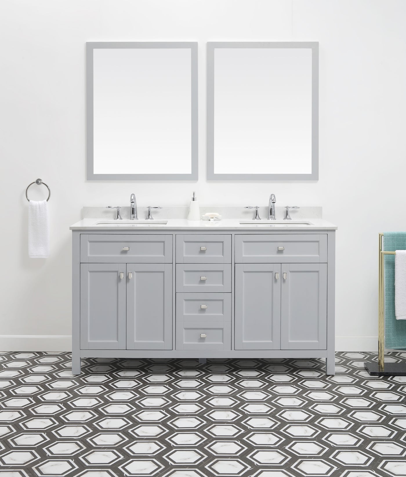 White Double Vanity, Engineered Marble Top & Ceramic Basin