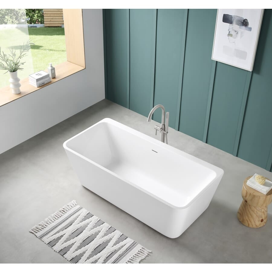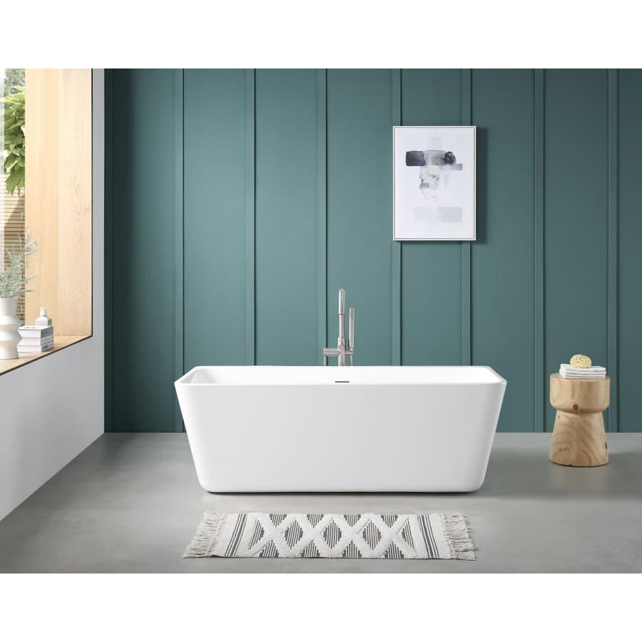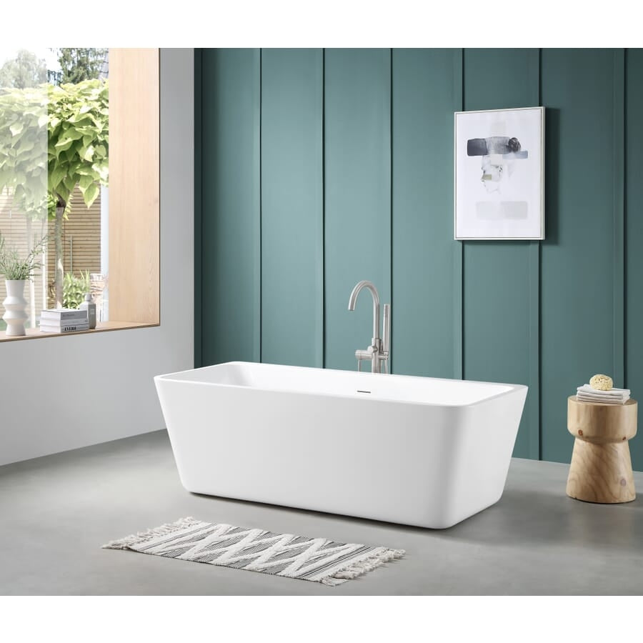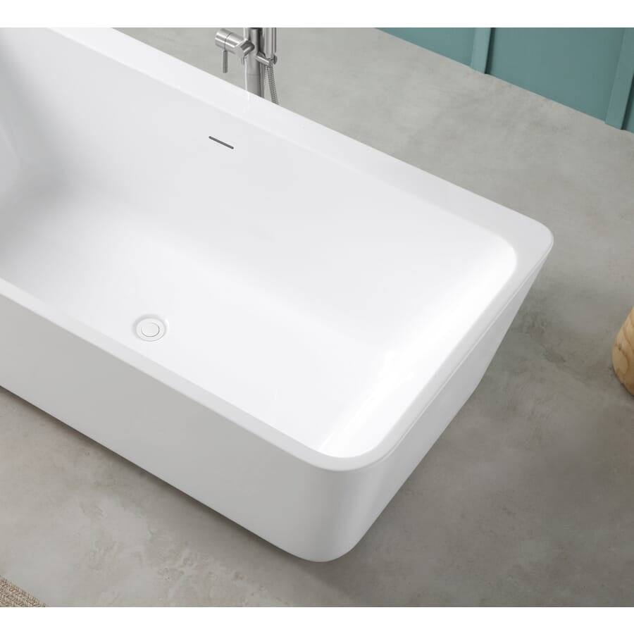 Soaking depth of 14.5625 in. with a 68.7 gal. capacity. Concealed, adjustable leveling legs. Includes preinstalled pop-up drain and overflow. Drain Cap Interchangeable. No faucet holes - supports wall-mounted or freestanding faucets. Faucet not included