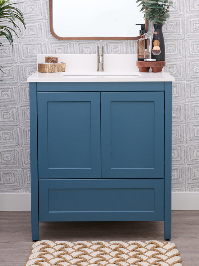 Hanleigh 30 in. Vanity with Shaker Doors in Harbor teal
