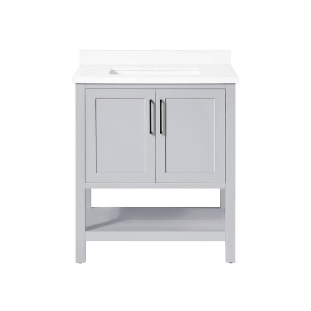 BANKS 30IN VANITY WITH SHAKER DOOR IN DOVE GREY WITH WHITE QUARTZ TOP & CERAMIC BASIN