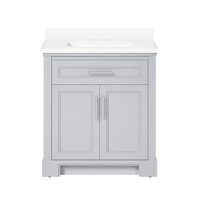 SCARLETT 30IN VANITY IN DOVE GREY WITH WHITE QUARTZ TOP & CERAMIC BASIN