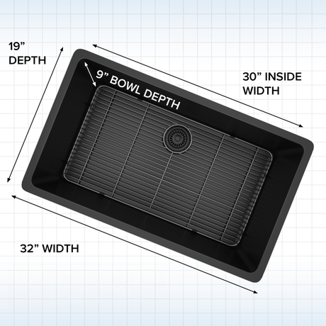 32 in. Single Bowl Undermount Quartz Kitchen Sink, Black