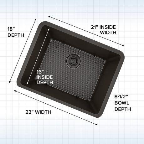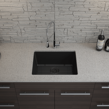 23 in. Single Bowl Undermount Quartz Kitchen Sink, Black