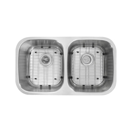 Undermount 32-1/4 in. 50/50 Bowl Low Divider 18 Ga. Stainless Steel Kitchen Sink