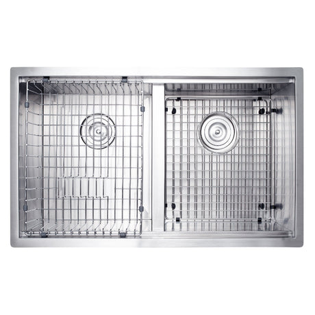 Undermount 32-1/4 In. 50/50 Bowl 16 Ga. Stainless Steel Kitchen Sink