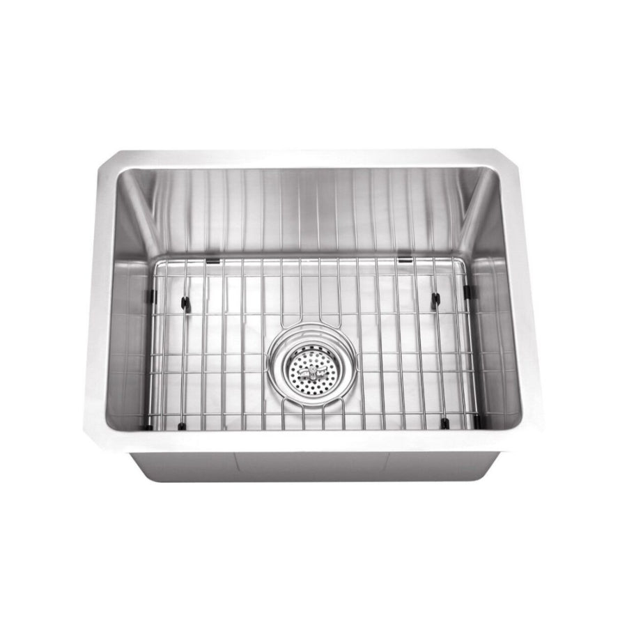 Constructed of luxury 16 gauge certified 304 series 18/10 CrNi stainless steel. Sound dampened with sprayed sound proof coating and an additional thick rubber sound proof pad. Triple reinforced undermount panel. Includes sink grid, drain assembly, mounting hardware, and cutout template. Made for residential use only. Do not use for commercial applications
