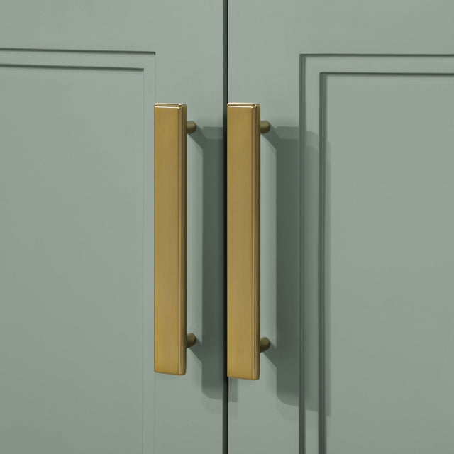 Cabinet features 2 soft-closing doors, 1 flip-down drawer, 1 adjustable shelf . Integrated recessed toe kick for easy cleaning and concealing supply lines. Sage Green cabinet with two sets of hardware in brushed nickel & champagne bronze. White Quartz top with matching 3" backsplash & ceramic basin with pre-drilled holes for 4" faucet (faucet not included)
