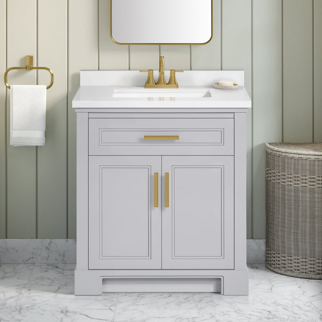 SCARLETT 30IN VANITY IN DOVE GREY WITH WHITE QUARTZ TOP & CERAMIC BASIN