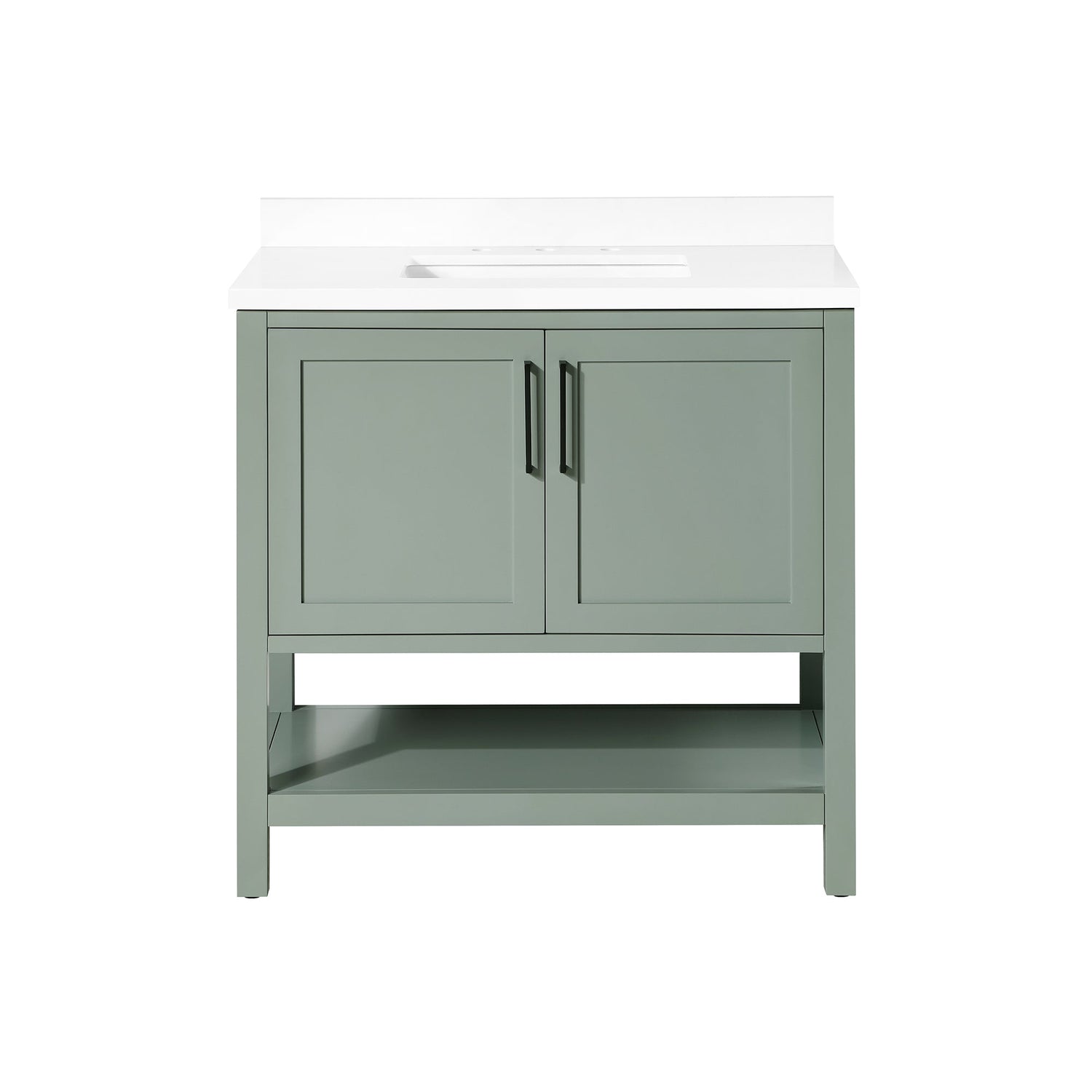 BANKS 36IN VANITY WITH SHAKER DOOR IN SAGE GREEN WHITE QUARTZ TOP & CERAMIC BASIN