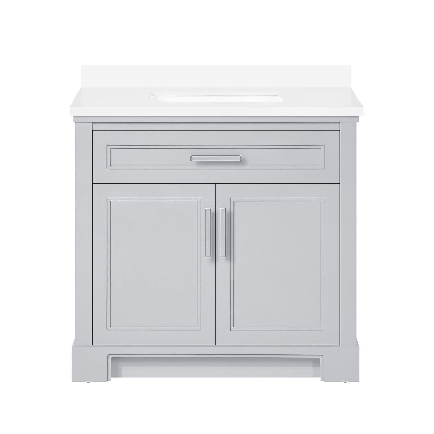 SCARLETT 36IN VANITY IN DOVE GREY WITH WHITE QUARTZ TOP & CERAMIC BASIN