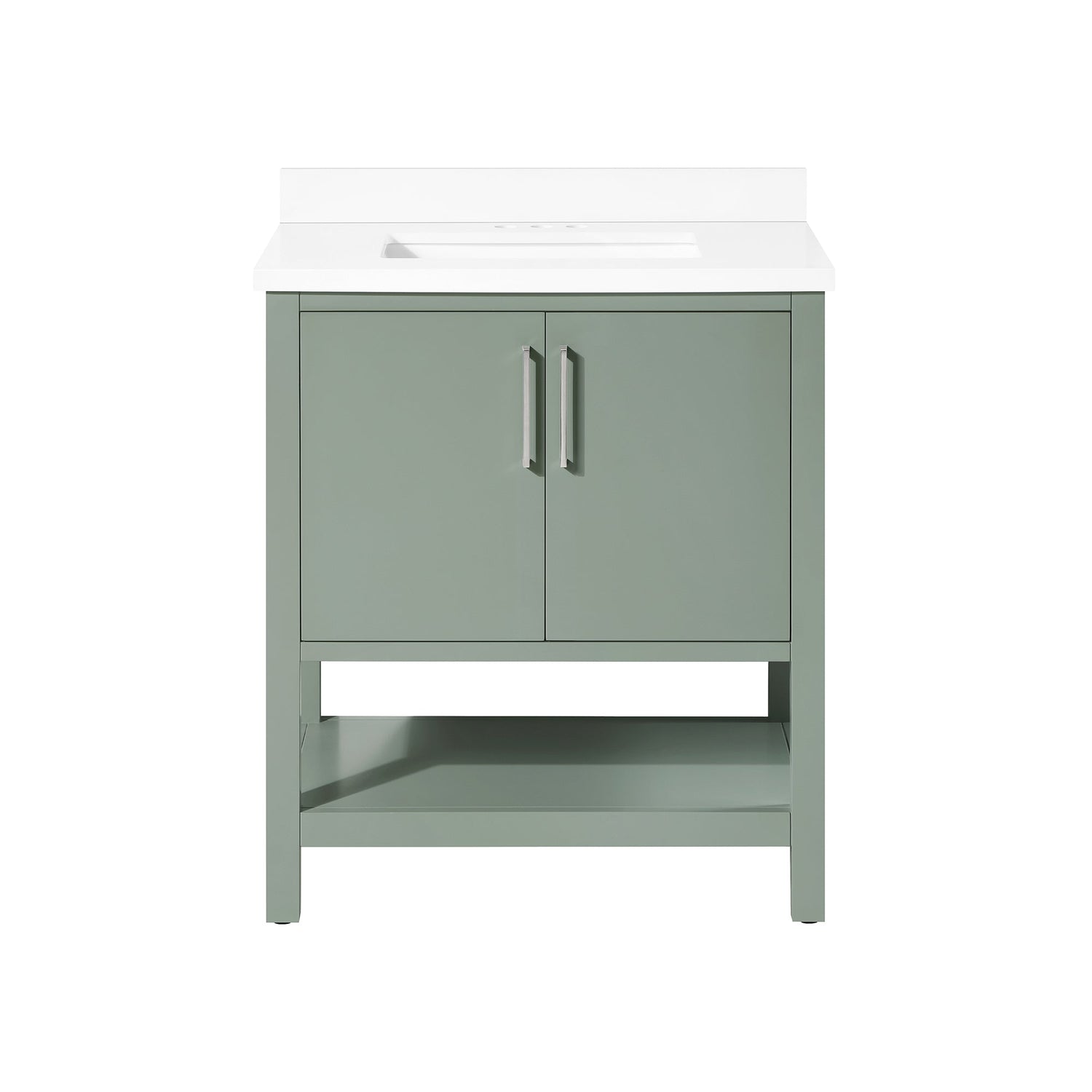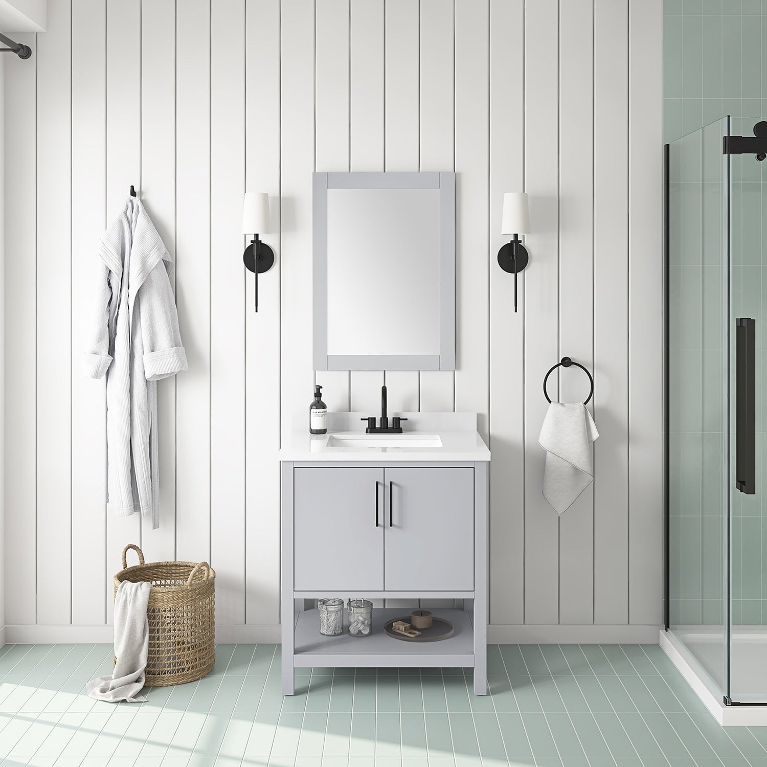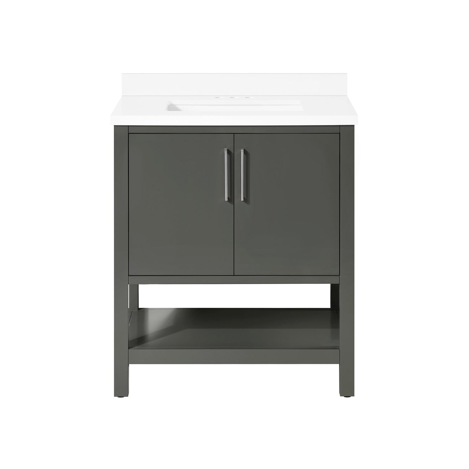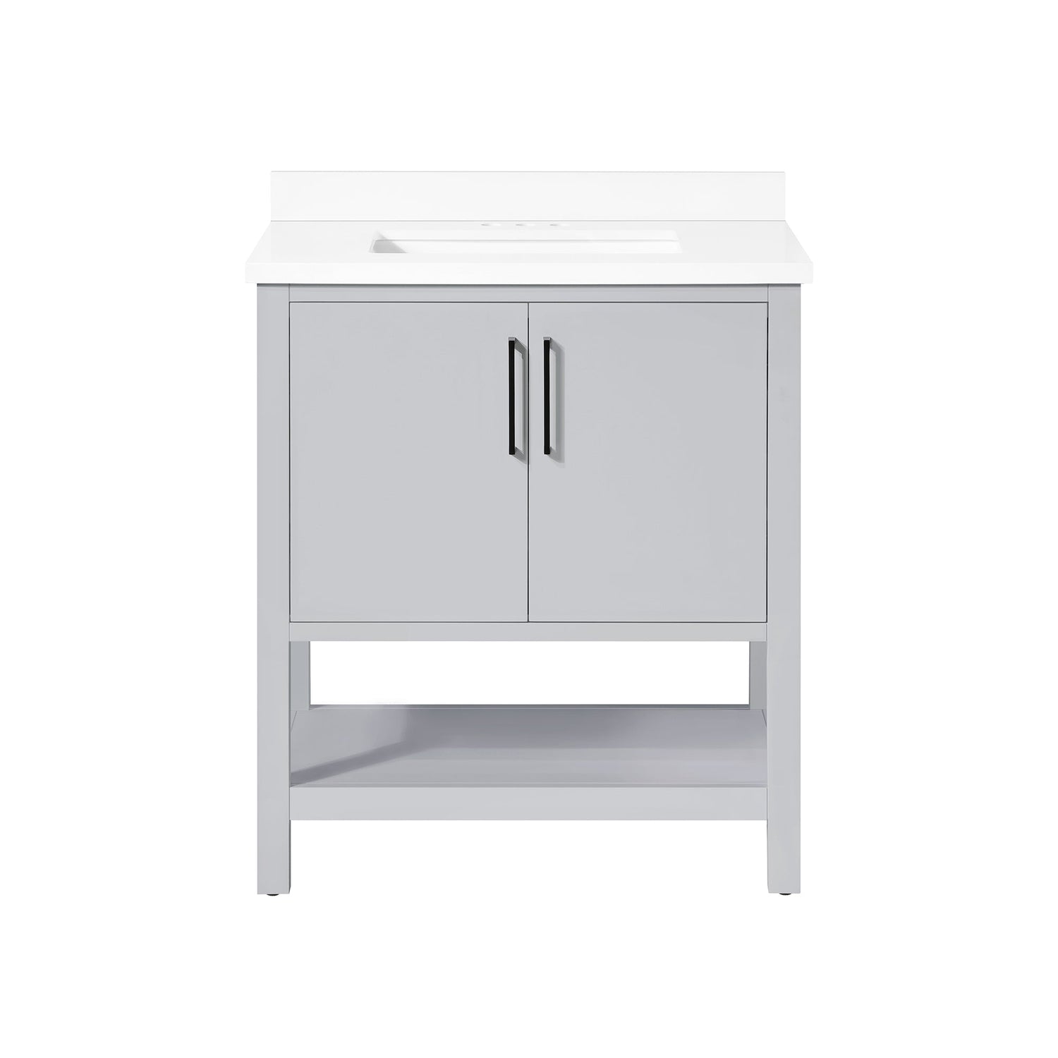 BANKS 30IN VANITY WITH SLAB DOOR WITH WHITE QUARTZ TOP & CERAMIC BASIN