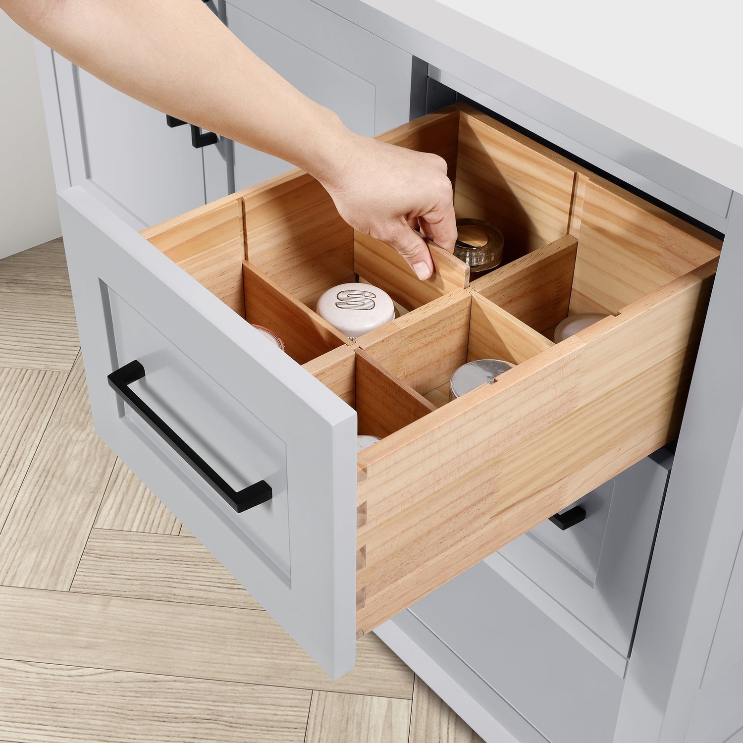 BANKS 42IN VANITY WITH SHAKER DOOR WITH WHITE QUARTZ TOP & CERAMIC BASIN